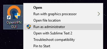 - OpenVPN GUI, installed in the default location and with the default settings on your PC